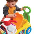 ¡Tanta música! ¡Mucha diversión! También se incluye almacenamiento debajo del asiento