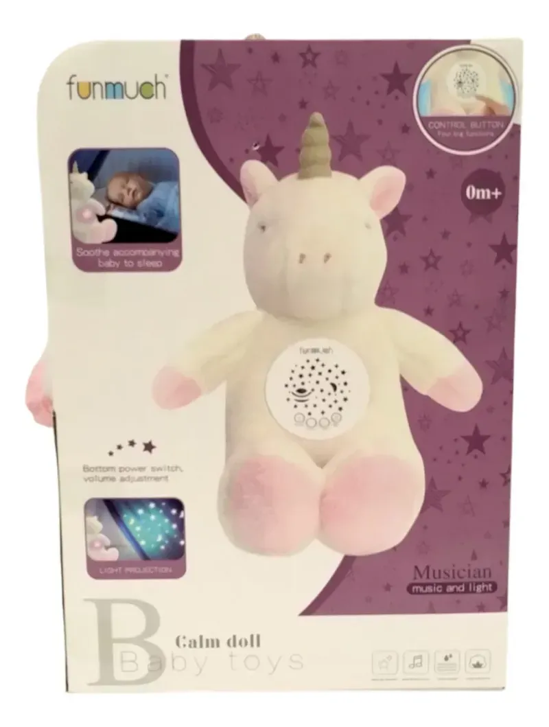 Dulce, suave y lleno de magia. Este adorable peluche unicornio con luces y sonidos es el compañero ideal para acompañar el sueño de tu bebé. Emite suaves melodías y proyecta luces relajantes que ayudan a crear un ambiente tranquilo y acogedor durante la hora de dormir. Su textura esponjosa y su diseño tierno lo convierten en el regalo perfecto para recién nacidos y niños pequeños.