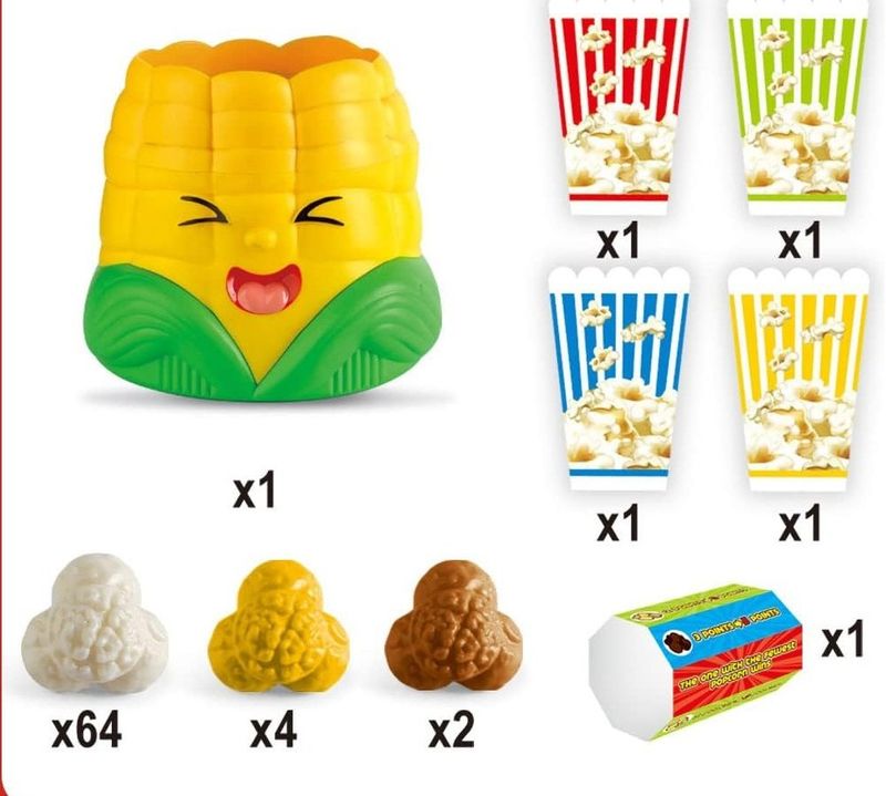 Ideal para niños a partir de 4 años, este juguete estimula la coordinación, los reflejos y la diversión en grupo. ¡Cada partida es una sorpresa diferente y una lluvia de palomitas!