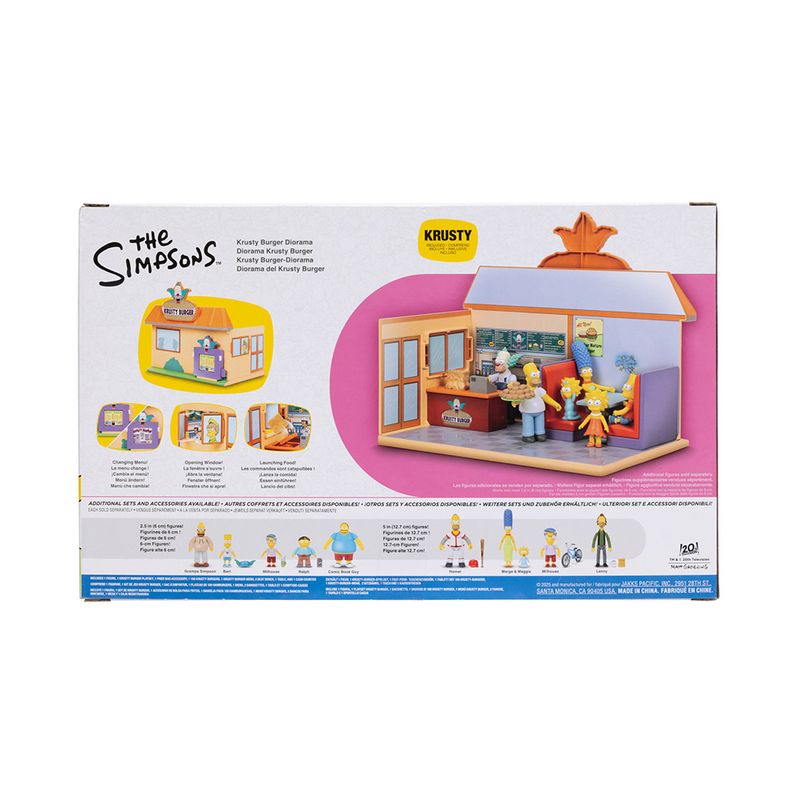 Revive las escenas más divertidas del restaurante de hamburguesas más famoso de la serie con este diorama coleccionable a escala, que incluye una figura de Krusty el Payaso y todos los detalles que hacen único su local: mostrador, menús, cabinas y decoración inspirada en la caricatura original.